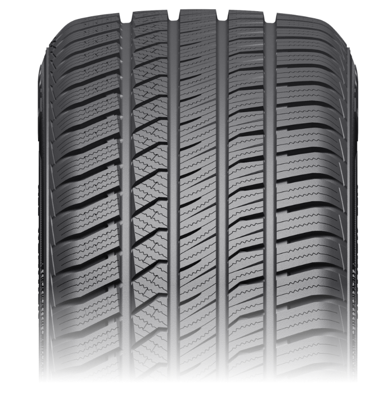 - Asymmetric all-weather tread design with multi-angled siping per tread block effectively enhances traction and handling year-round.