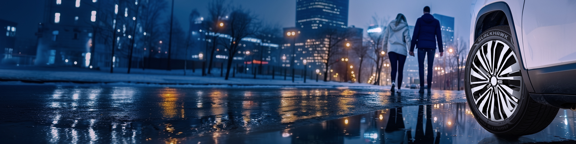 Pluie ou brouillard ? Les pneus toutes saisons et d’hiver Blackhawk vous permettent de vous concentrer sur le romantisme plutôt que sur la route.