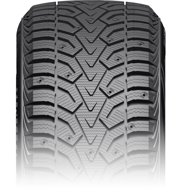 - BLOCS DE BANDE DE ROULEMENT EN V ENCASTRÉS: Offre une adhérence supérieure sur les routes hivernales en évacuant la neige et la gadoue à travers les canaux en V, éloignant ainsi ces éléments de la surface de contact avec la route.